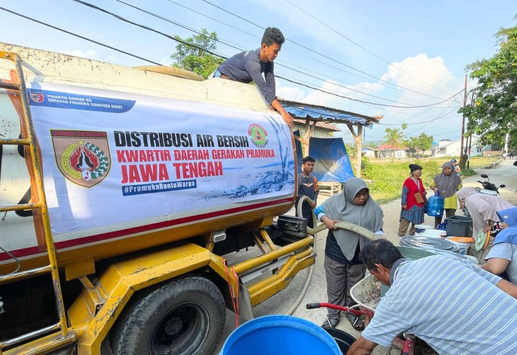 PADANG – Satuan Tugas (satgas) Pramuka Peduli Kwartir Daerah (Kwarda) Gerakan Pramuka Sumatera Barat mendistribusikan air bersih bagi warga yang terdampak banjir di Kecamatan Kuranji, Kota Padang, Minggu/25/01/26. Sebanyak 32.000 liter air bersih bantuan dari Kwarda Jawa Tengah mengisi penampungan air yang berbaris di sepanjang jalan menuju makam pahlawan Kuranji. Penyaluran air bersih ini sebagai…