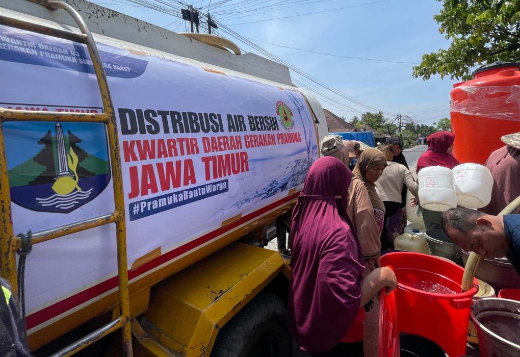 Pramuka Bantu Warga, Satgas Pramuka Peduli Kwarda Sumbar Salurkan Bantuan Air Bersih Dari Kwarda Jatim