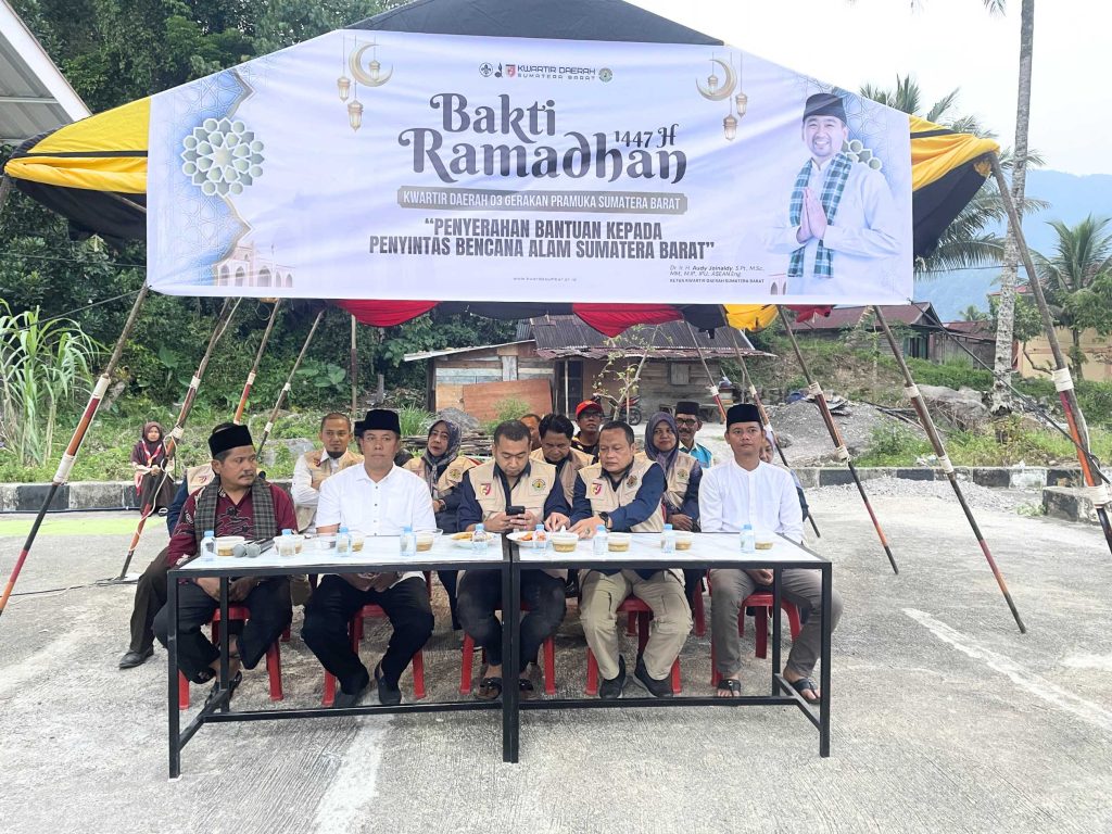 AGAM – Ketua Kwartir Daerah (Kwarda) Gerakan Pramuka Sumatera Barat, Kakak Audy Joinaldy menggelar buka puasa bersama penyintas banjir dan longsor di hunian sementara Linggai, Kecamatan Agam, pada Ramadan 1447 H.