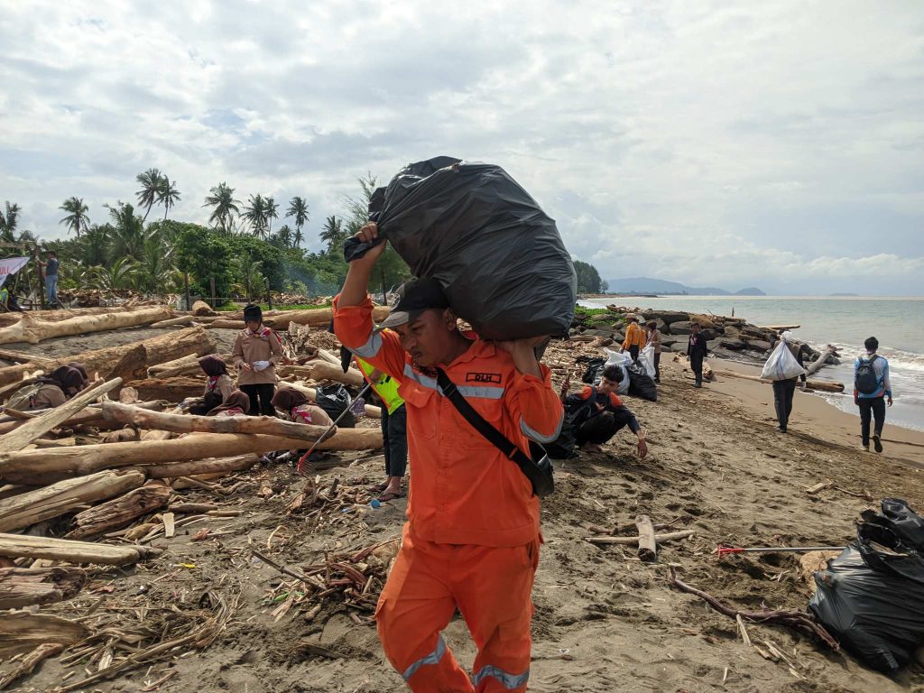 Pramuka Peduli Kwarda 03 Sumbar mengambil langkah untuk membantu petugas Dinas Lingkungan Hidup (DLH) Kota Padang yang mengatakan optimis pembersihan area pantai yang terdampak selama 9 hari masa kerja.