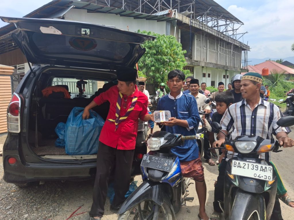 Proses pendistribusian dilakukan langsung oleh Satgas Pramuka Peduli Kwarda Sumbar. Mereka mendatangi mesjid-mesjid terdampak di lokasi bencana. Bantuan ini diserahkan kepada jemaah setelah pelaksaan ibadah shalat jum’at.