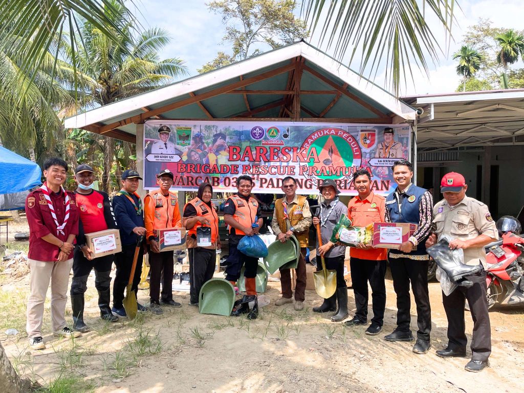 BATANG ANAI (06/12/25) Wakil Ketua Bidang Humas Teknologi dan Informatika Kak Thamrin Cleveland pimpin rombongan Pramuka Peduli Kwarda Sumbar salurkan bantuan ke Posko Brigade Rescue Pramuka (bareska) Kwarcab Padang Pariaman yang bertempat di Kampung Palak Pisang, Sungai Buluah Barat, Kecamatan Batang Anai.